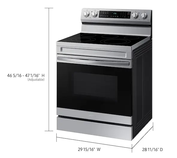 Samsung Electric Smart Range offers a total capacity of 6.3 Cubic Feet, 5 smooth top elements with a rapid boil burner, double ring burner, and warming center. This electric range is Wi-Fi connected and voice-enabled, making it easy to make delicious meals for your family. You can preheat, monitor, and adjust your oven’s cooking time and temperature right from your smartphone through the SmartThings app, or control your oven with your favorite virtual assistant, whether it’s Bixby, Google Assistant & Amazon Alexa. It also provides a range of convenient features to make cooking and cleaning easier such as powerful convection, No Pre-heat Air Fry, Self + Steam Clean, Hidden Bake Element, Sabbath Mode, Auto Oven Light, Child Safety Lock, and Extra Oven Settings – Bread Proof, Dehydrate, Favorite Cook, Keep Warm.
