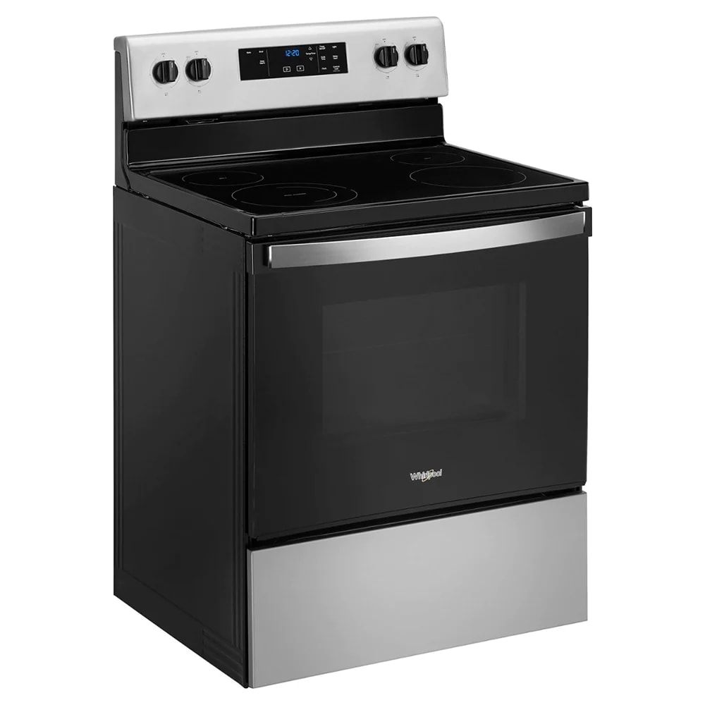 30 Inch Freestanding Electric Range with 4 Radiant Elements Put the power of electric cooking into your kitchen with this sleek, dynamic range oven from Whirlpool. 5.3 cu. ft. of oven space gives you plenty of room for cooking a turkey or multiple dishes at once. Black ceramic glass surface efficiently transmits heat from the radiant elements to your cookware and its smooth surface wipes down with ease. FlexHeat dual radiant element gives you the power of two elements in one; use the 6″ mode for smaller pots and pans and the 9″ mode for larger cookware and fast boiling.About Whirlpool At Whirlpool, advanced performance means getting great results while using less water and energy. Their ENERGY STAR qualified appliances to deliver eco-efficient operation that exceeds the toughest government standards. Whirlpool is dedicated to making guesswork a thing of the past. Every detail is attended to. Every machine is designed to help you manage your home precisely the way you want-easier, faster and smarter. Available at AJ Madison.