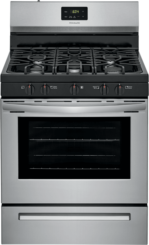 The Frigidaire 30″ Gas Range gives you more cooking flexibility with a 5.0 cu. ft. capacity oven and storage drawer. The cooktop features 5 Sealed Gas Burners, including a 16,000 BTU Quick Boil Burner, 10,000 BTU Oval Burner, and a Low-Simmer Burner, so you can have precise temperature control with high and low heat. Stainless Steel exterior is durable and creates a premium look in your kitchen.