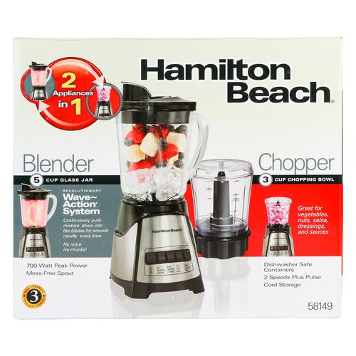 These Hamilton 2-in-1 appliances make creating any dish or nutritious juice more straightforward, featuring both a food processor and a blender. The included 1.18 L / 40 oz pitcher is equipped with the innovative Wave-Action system, ensuring consistently smooth mixtures by drawing ingredients down into the blades. With up to 700 watts of power, achieving perfect textures every time is effortless.